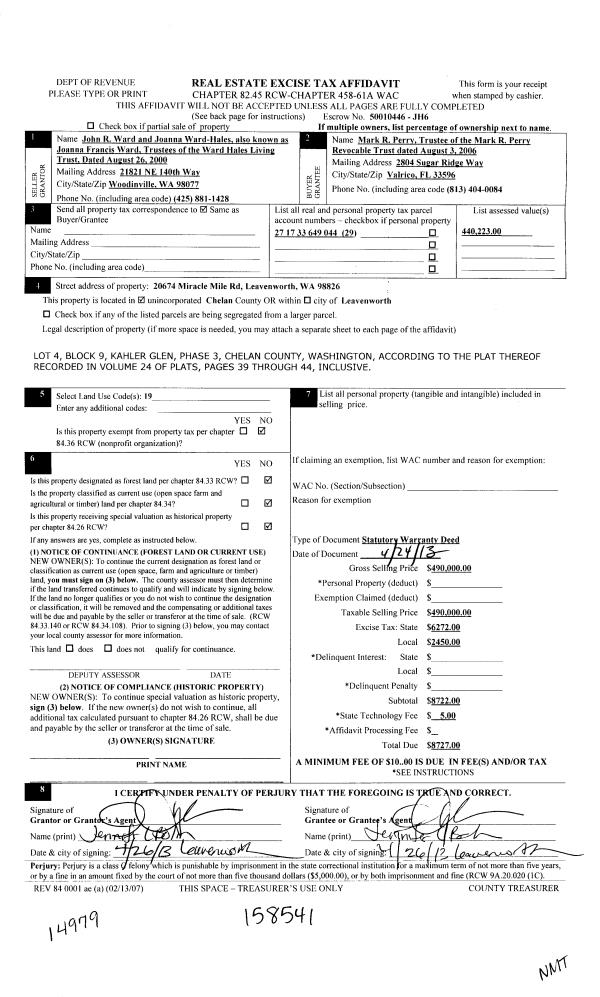 | Mailing Address: | PO BOX 1860 CHELAN, WA 98816 | % Ownership: | % |