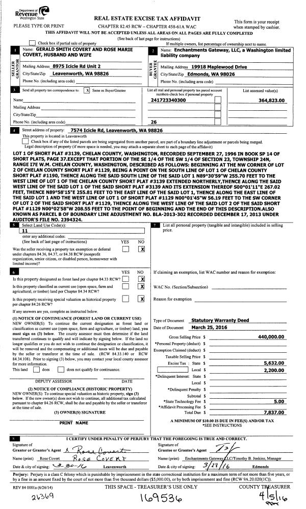 | 4 | 02/27/2015 | SWD | Statutory Warranty Deed | CLARK RANDY N & JUDY L LP | ADAMS TRI-CITIES ENTERPRISES INC | | | $1,400,000.00 | 165006 | 2414165 |