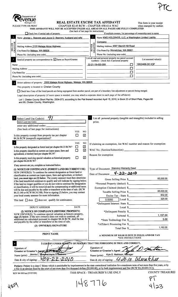CHELAN, WA 98816 | T 27N R 22EWM S 22 LOT 7 BLA 2023-01CH LOT C CE# 05-033 10.0000 ACRES |