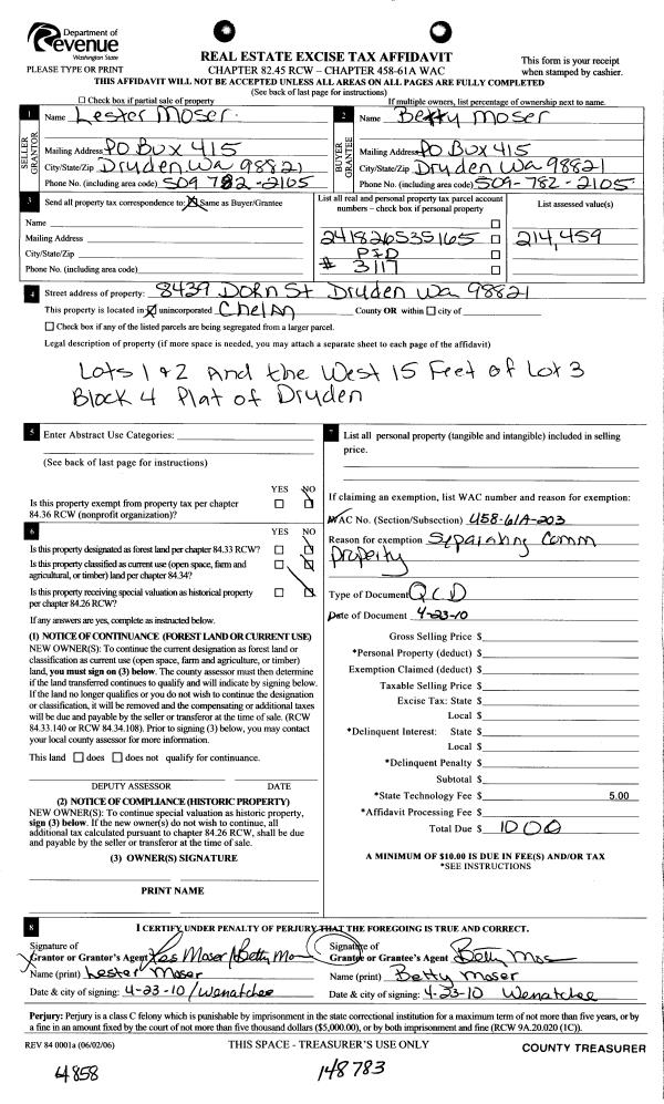 CHELAN, WA 98816 | T 27N R 22EWM S 24 SEC 23 NE LOT 24 BLA 223-01CH 10.0000 ACRES |