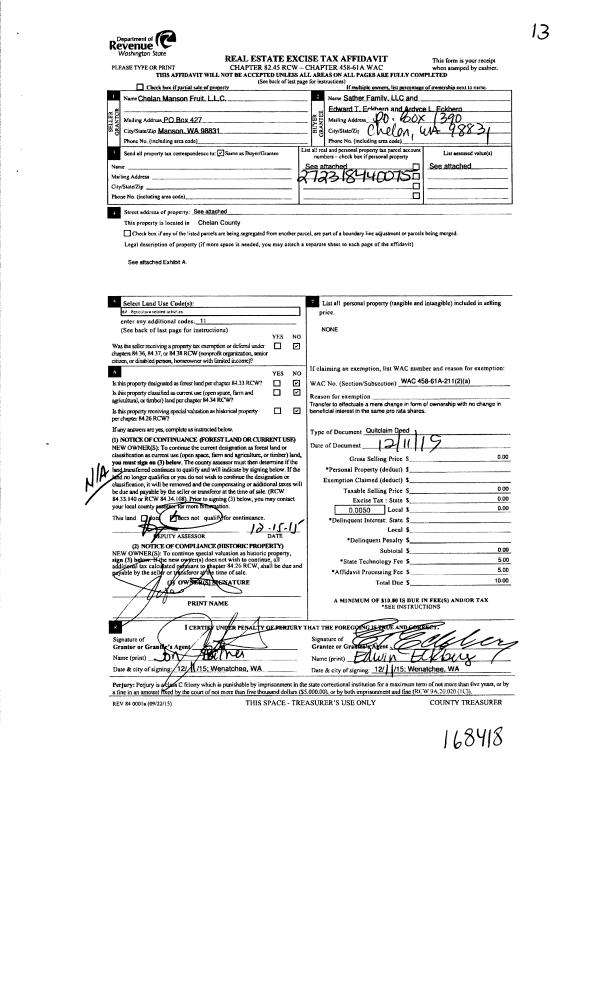 CHELAN, WA 98816 | T 28N R 22EWM S 27 SWSW SE SW P W1/2 SW 99.1000 ACRES |