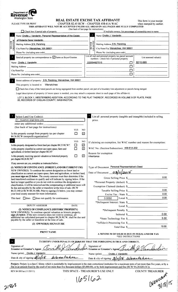 | 3 | 12/15/2015 | Q | Quit Claim Deed | SATHER FAMILY LLC | CHELAN MANSON FRUIT II LLC | | | $0.00 | 168420 | 2429827 |