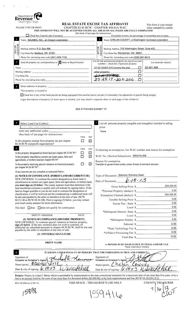 | 4 | 07/18/2013 | SWD | Statutory Warranty Deed | NAUMES INC | CHELAN COUNTY | | | $224,335.00 | 159416 | 2386077 |