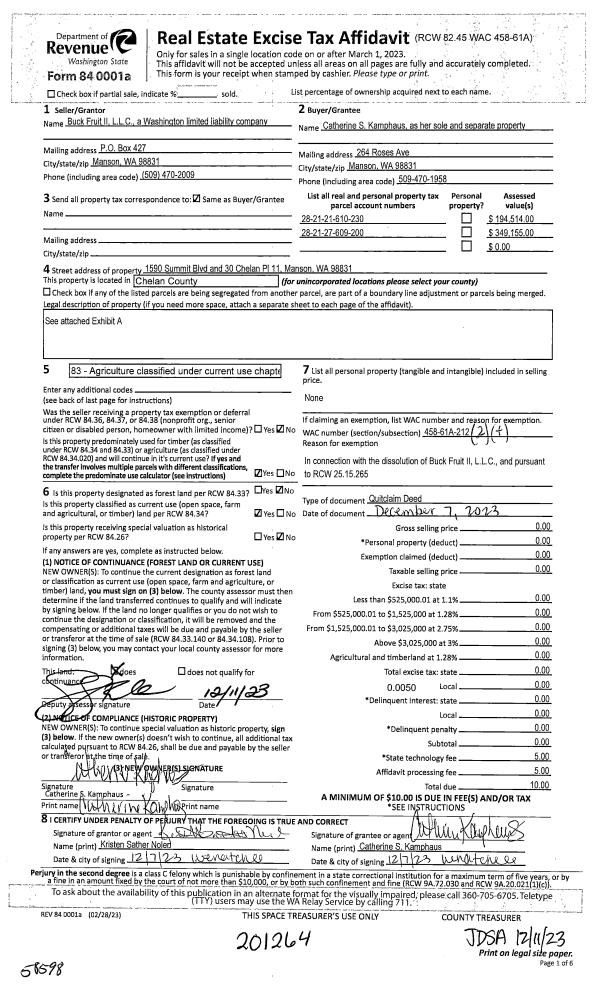 | 2 | 12/11/2023 | Q | Quit Claim Deed | BUCK FRUIT II LLC | KAMPHAUS CATHERINE S | | | $0.00 | 201264 | 2589338 |