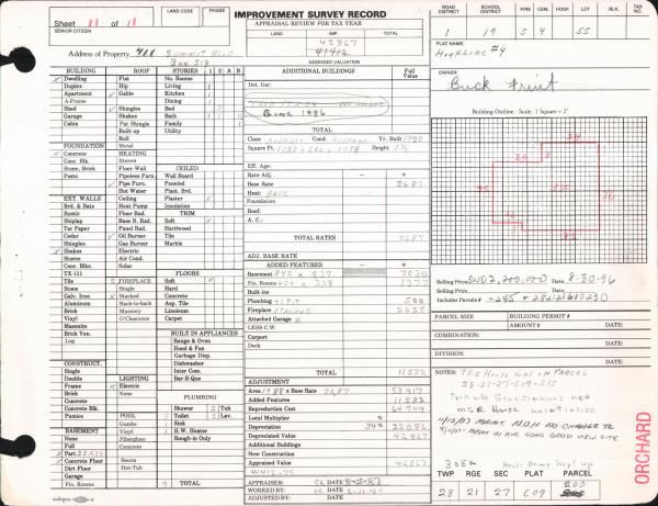 | 8 | 08/30/1996 | SWD | Statutory Warranty Deed | | BUCK FRUIT LLC | 1072 | 1257 | | 0 | |