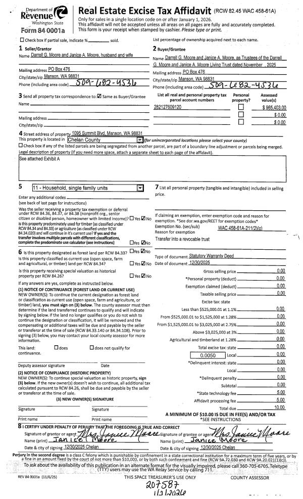 MANSON, WA 98831 | T 28N R 22EWM S 20 SESESE PARCEL F 2.6100 ACRES |