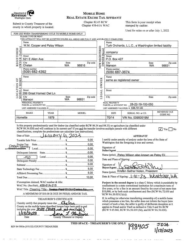 MANSON, WA 98831 | T 28N R 22EWM S 19 LOT A CE 2006-036; GOV LOT 3; 23.0000 ACRES |