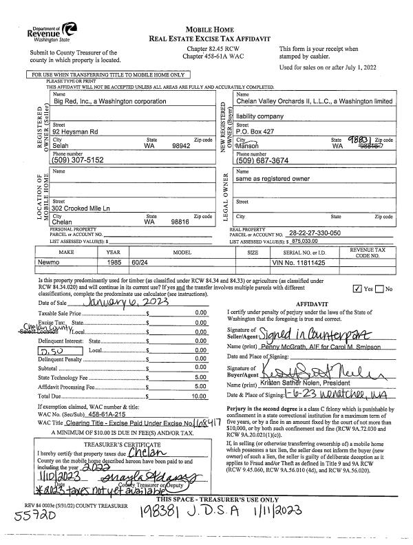 CHELAN, WA 98816 | T 27N R 23EWM S 18 NE1/4 NWSESE 3.9100 ACRES |