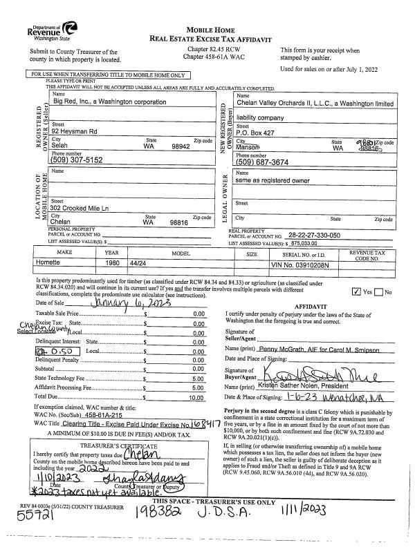 MANSON, WA 98831 | T 28N R 22EWM S 19 LOT A CE 2006-036; GOV LOT 3; 23.0000 ACRES |