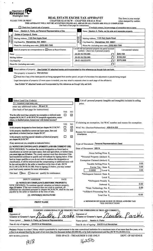 | 6 | 06/16/2014 | PR | Personal Representatives Deed | PARKS NEWTON A | PARKS NEWTON A | | | $0.00 | 162510 | 2401830 |