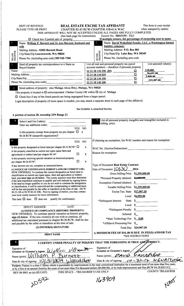 | 1 | 10/30/2014 | C | Real Estate Contract | BURNETT WILLIAM P | DAVID WAKEFIELD FAMILY LLC | | | $1,399,000.00 | 163909 | 2408438 |