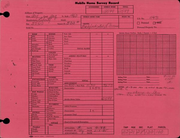 | Improvement #1: | MOBILE HOME | State Code: | 11 | 500.0 sqft | Value: | $998 |