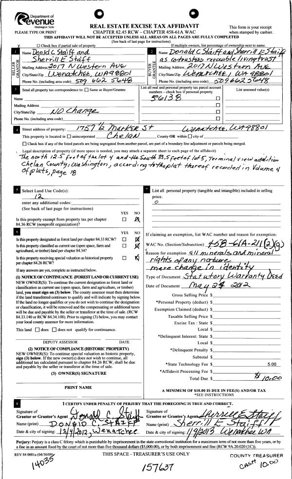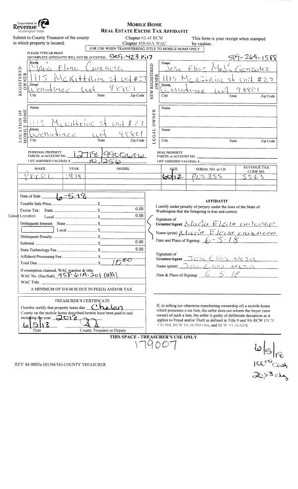 | Mailing Address: | 3214 JAGLA RD WENATCHEE, WA 98801 | % Ownership: | % |