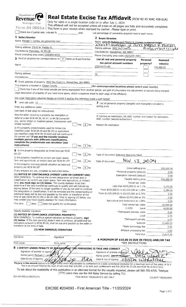 | 2 | 09/27/2024 | SWD | Statutory Warranty Deed | ORLANDO CATHLEEN & GARY | SOSA PAULO G & SHARMAN M | | | $282,500.00 | 203606 | 2599468 |