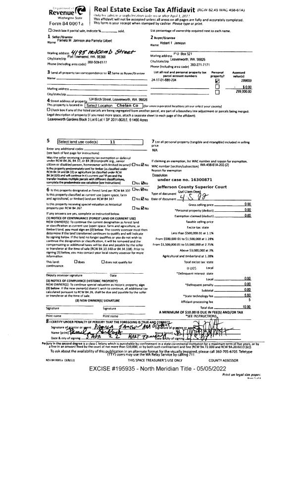 | 2 | 05/05/2022 | Q | Quit Claim Deed | JAMISON PAMELA M & ROBERT T | JAMISON ROBERT T | | | $0.00 | 195935 | 2566690 |