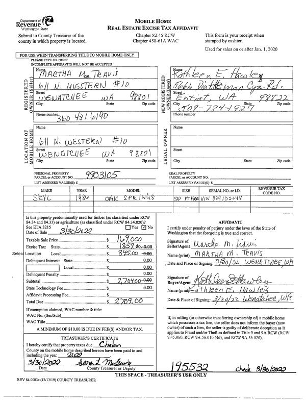| Mailing Address: | 295 BURCH HOLLOW LN WENATCHEE, WA 98801 | % Ownership: | % |