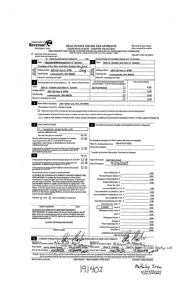 | Mailing Address: | 216 NORDIC CIR LEAVENWORTH, WA 98826 | % Ownership: | % |