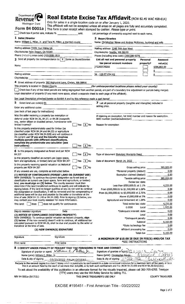 | Mailing Address: | C/O PR ESTATE OF KIM NESSELQUIST 213 NORDIC CIR LEAVENWORTH, WA 98826 | % Ownership: | % |