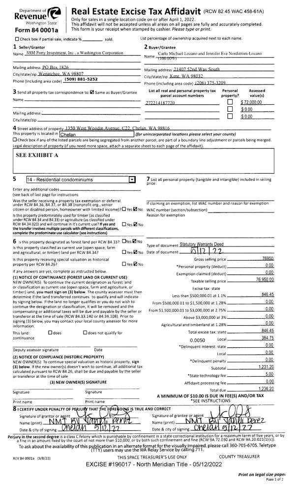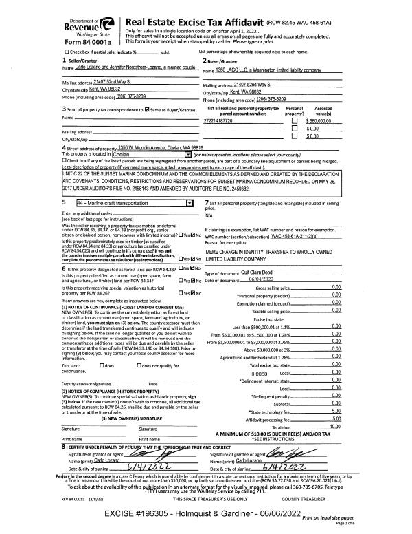 CHELAN, WA 98816 | CONDO SUNSET MARINA CONDOMINIUM SLIP WA1 0.0000 |
