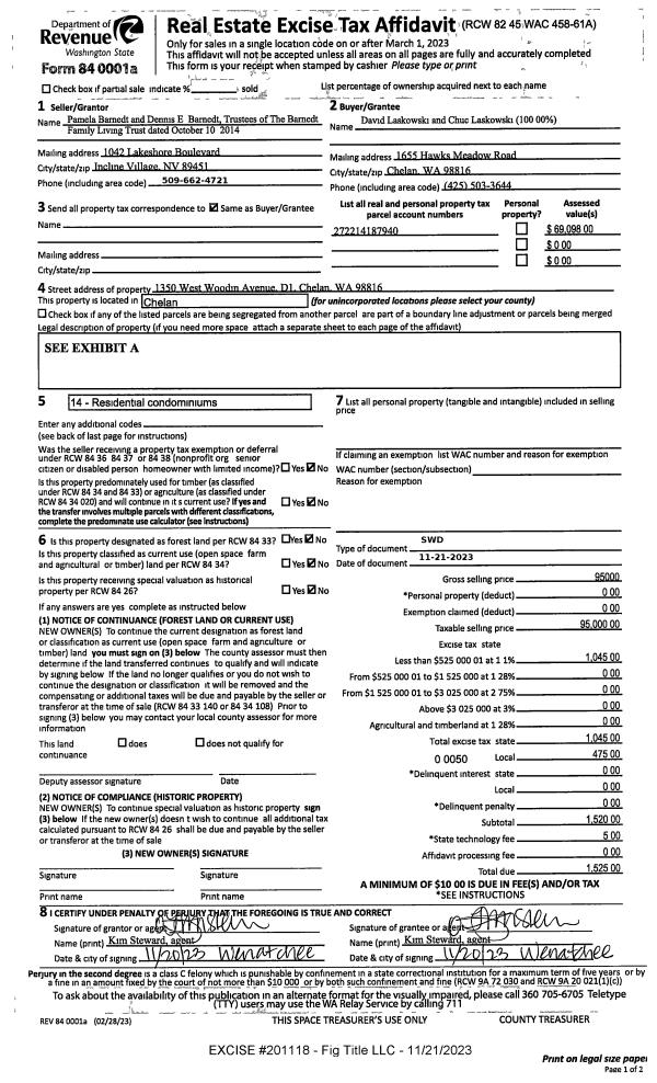 CHELAN, WA 98816 | CONDO SUNSET MARINA CONDOMINIUM SLIP WD1 0.0000 |