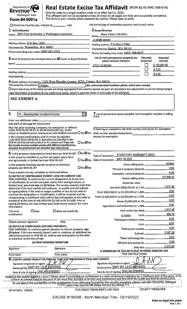 CHELAN, WA 98816 | CONDO SUNSET MARINA CONDOMINIUM SLIP WD1 0.0000 |