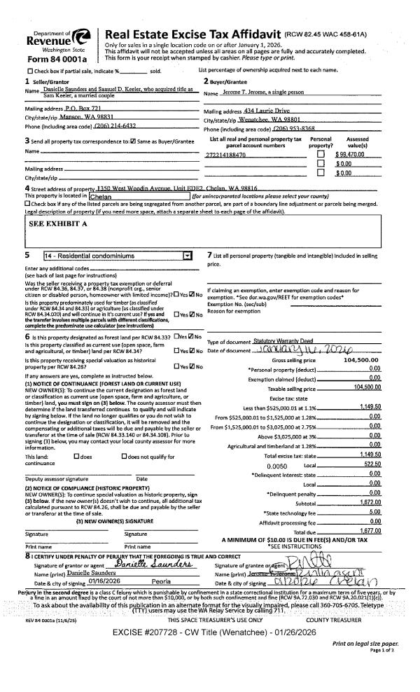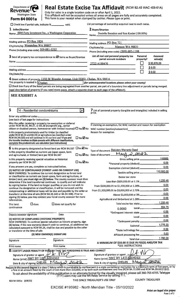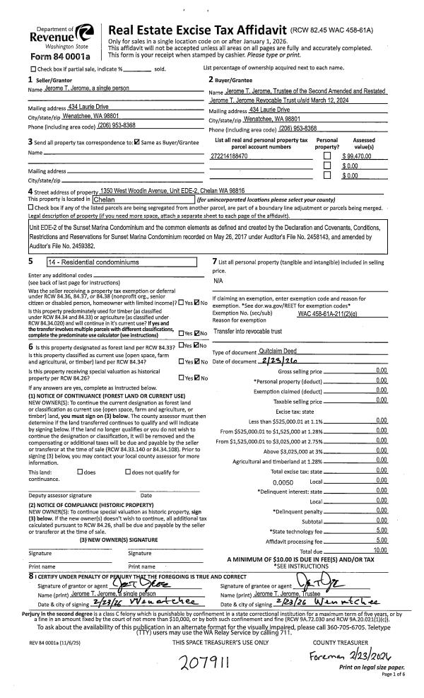 CHELAN, WA 98816 | CONDO SUNSET MARINA CONDOMINIUM SLIP WD1 0.0000 |