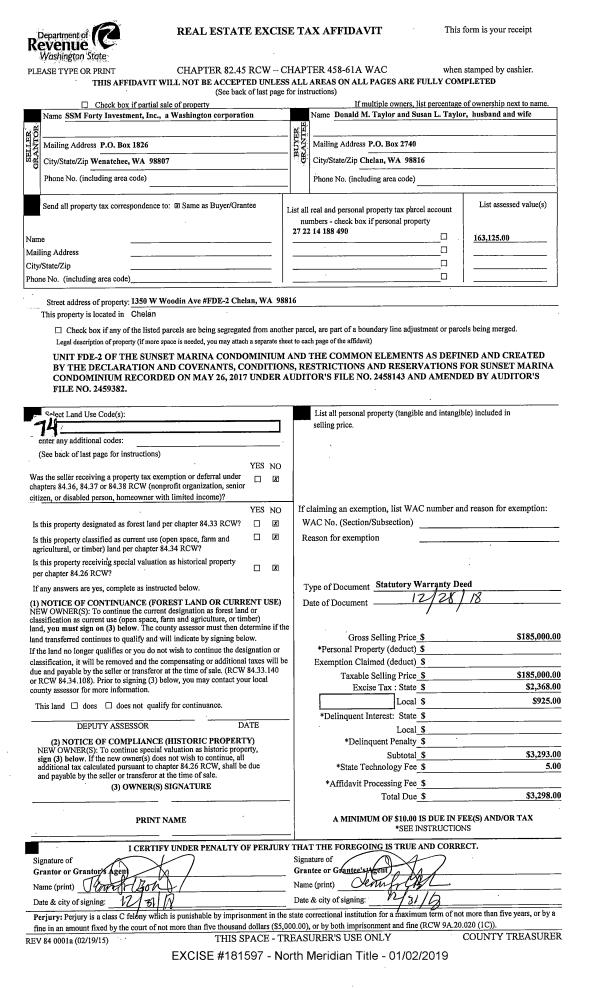 CHELAN, WA 98816 | CONDO SUNSET MARINA CONDOMINIUM SLIP WD1 0.0000 |