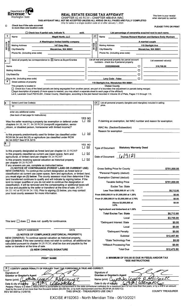 | 2 | 06/09/2021 | SWD | Statutory Warranty Deed | WAPITI NORTH LLC | WYSHAM THOMAS R & BARBARA E | | | $751,000.00 | 192063 | 2546021 |