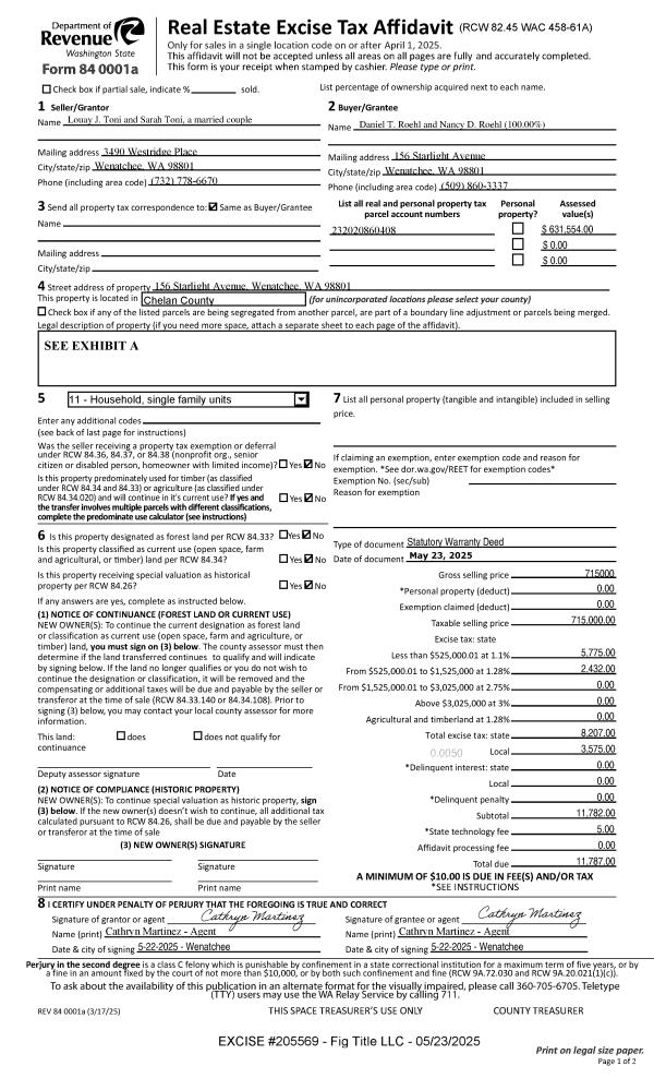 | 1 | 05/23/2025 | SWD | Statutory Warranty Deed | TONI LOUAY J | ROEHL DANIEL T & NANCY D | | | $715,000.00 | 205569 | 2608097 |