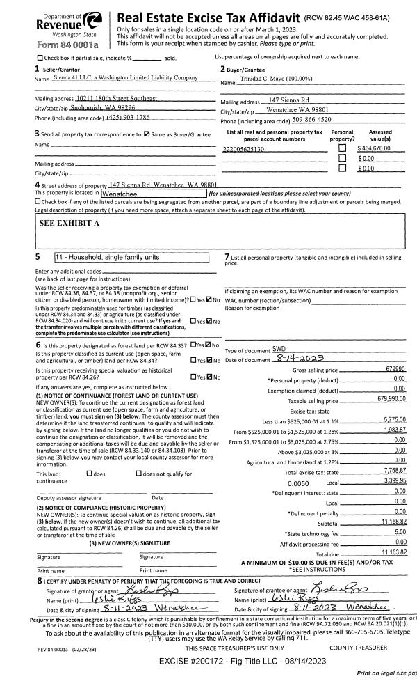| 1 | 08/14/2023 | SWD | Statutory Warranty Deed | SIENNA 41 LLC | MAYO TRINIDAD C | | | $679,990.00 | 200172 | 2584961 |