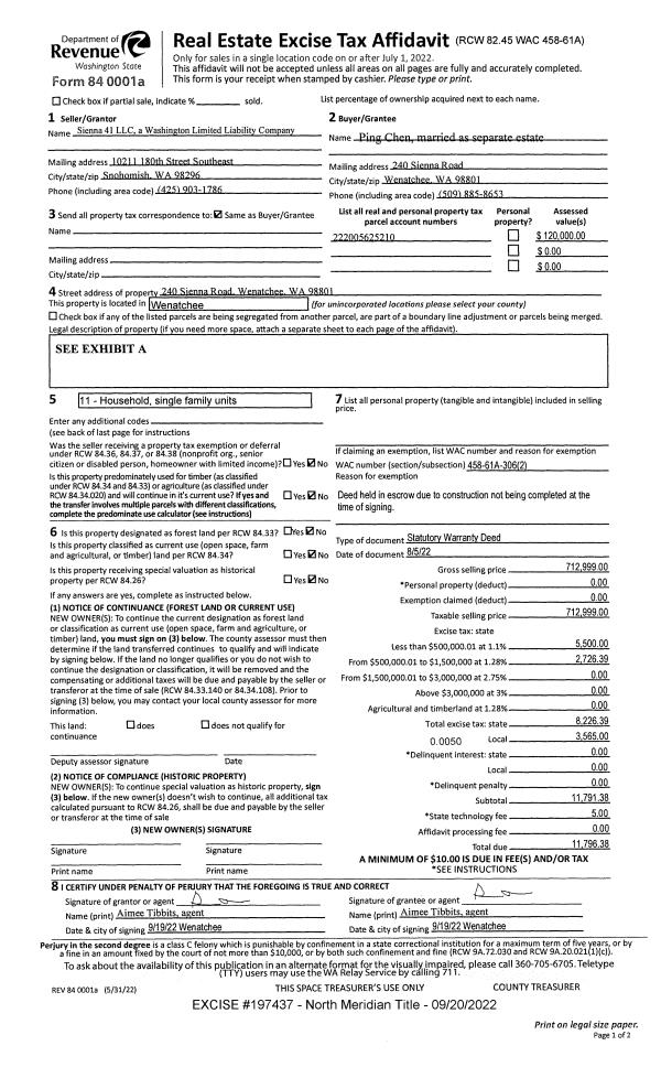 | 2 | 09/20/2022 | SWD | Statutory Warranty Deed | SIENNA 41 LLC | CHEN PING | | | $712,999.00 | 197437 | 2573507 |