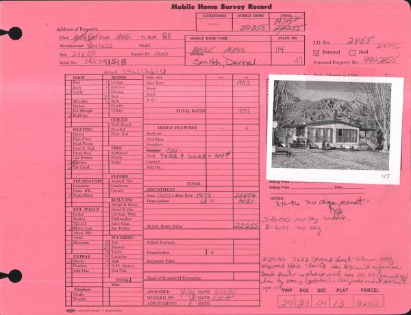 | Improvement #1: | MOBILE HOME | State Code: | 11 | 1200.0 sqft | Value: | N/A |