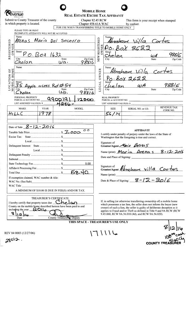 | 2 | 08/12/2016 | MH TITLE | Mobile Home Title | ARENAS MARIA | VILLA ABRAHAM CORTEZ | | | $3,000.00 | 171116 | |
