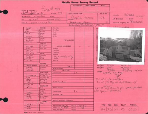 | Improvement #1: | MOBILE HOME | State Code: | 11 | 576.0 sqft | Value: | N/A |