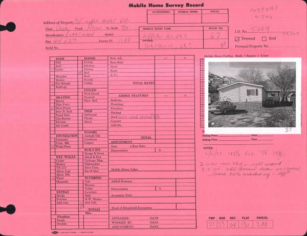 | Property ID: | 12897 | Abbreviated Legal Description: | APPLE ACRES MOBILE HOME PARK SPACE 67 1997 FLEETWOOD 44X27 |