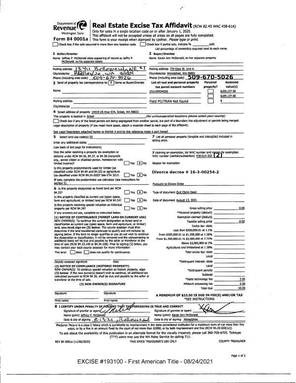 CASHMERE, WA 98815 | T 23N R 18EWM S 26 E1/2 320.0000 ACRES |