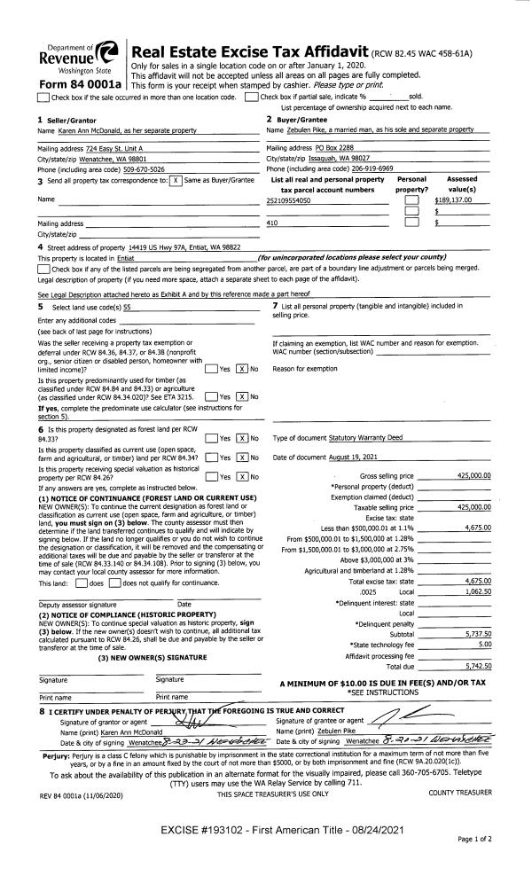 CASHMERE, WA 98815 | T 23N R 18EWM S 26 E1/2 320.0000 ACRES |
