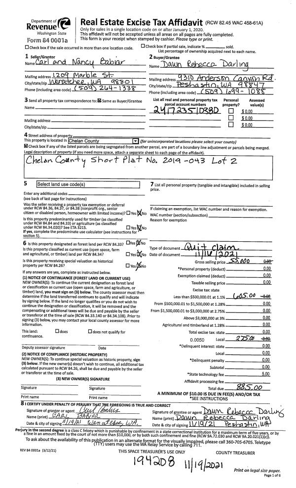 CASHMERE, WA 98815 | T 23N R 18EWM S 11 NESW SWSW SESW 120.0000 ACRES |