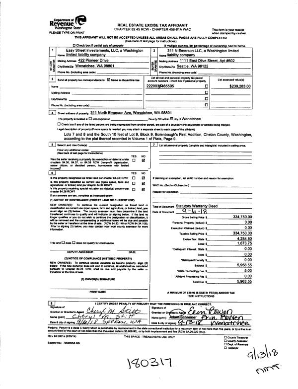 | Mailing Address: | 4626 RANK RD CASHMERE, WA 98815 | % Ownership: | % |