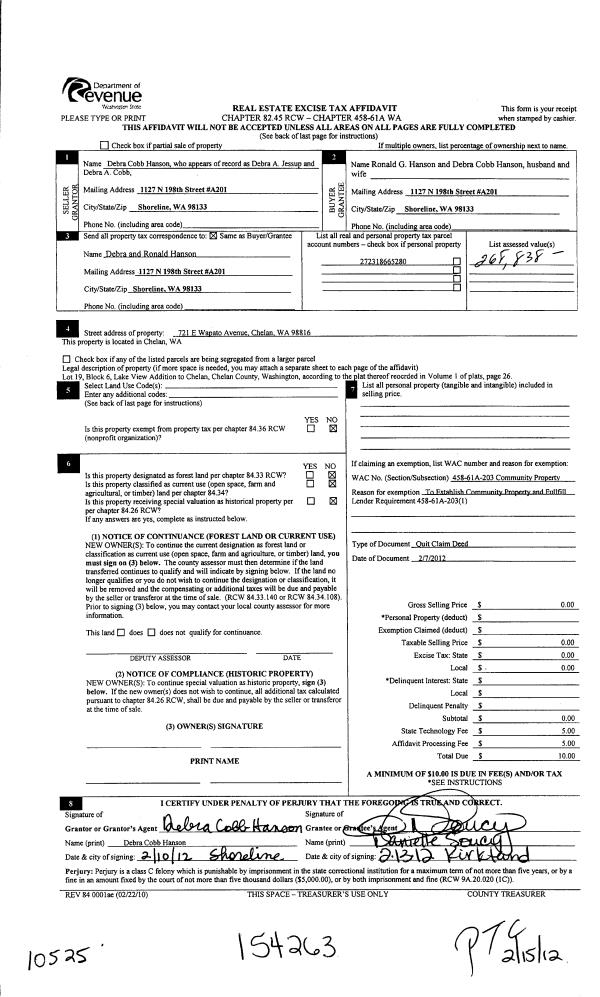 | 6 | 05/19/1999 | O | Other | CHELAN CO | MILNE JAMES | | | | 0 | 2053387 |